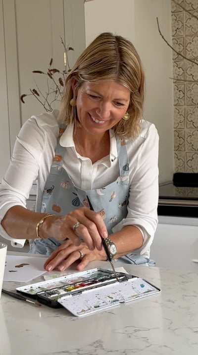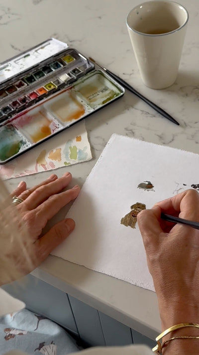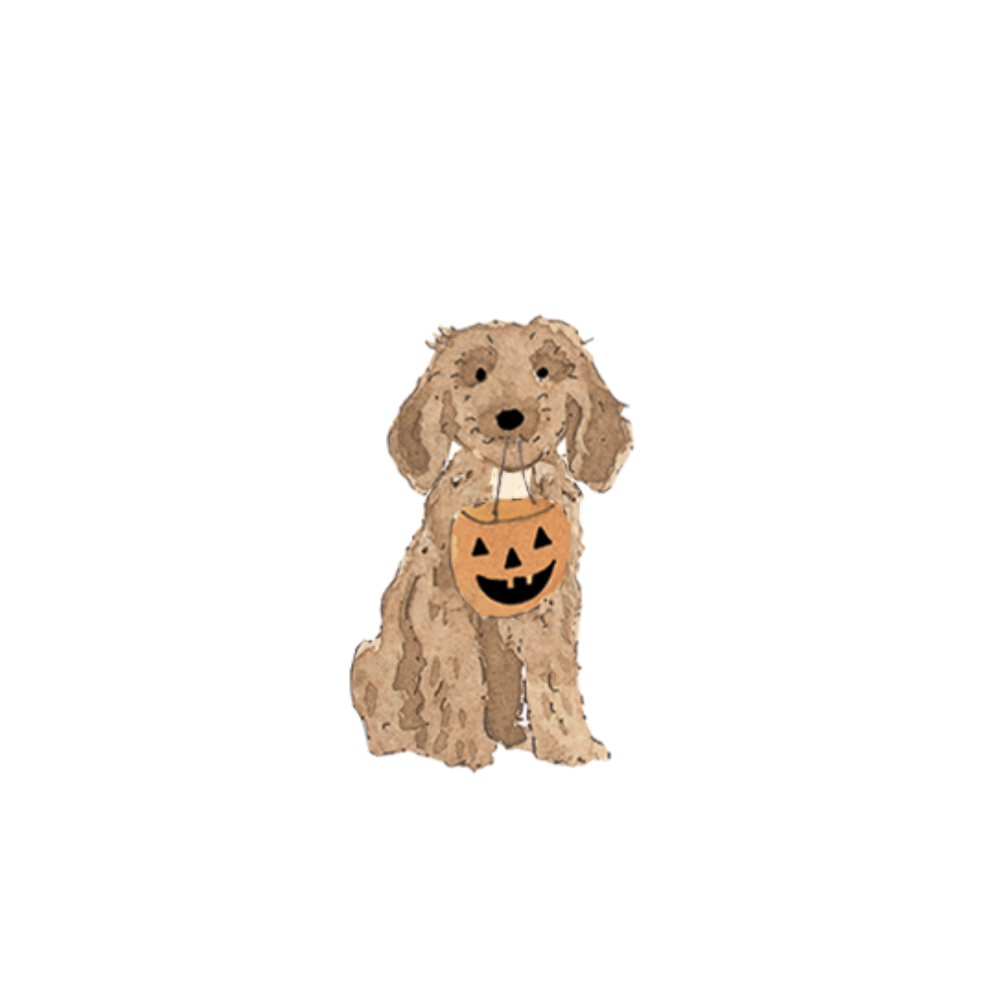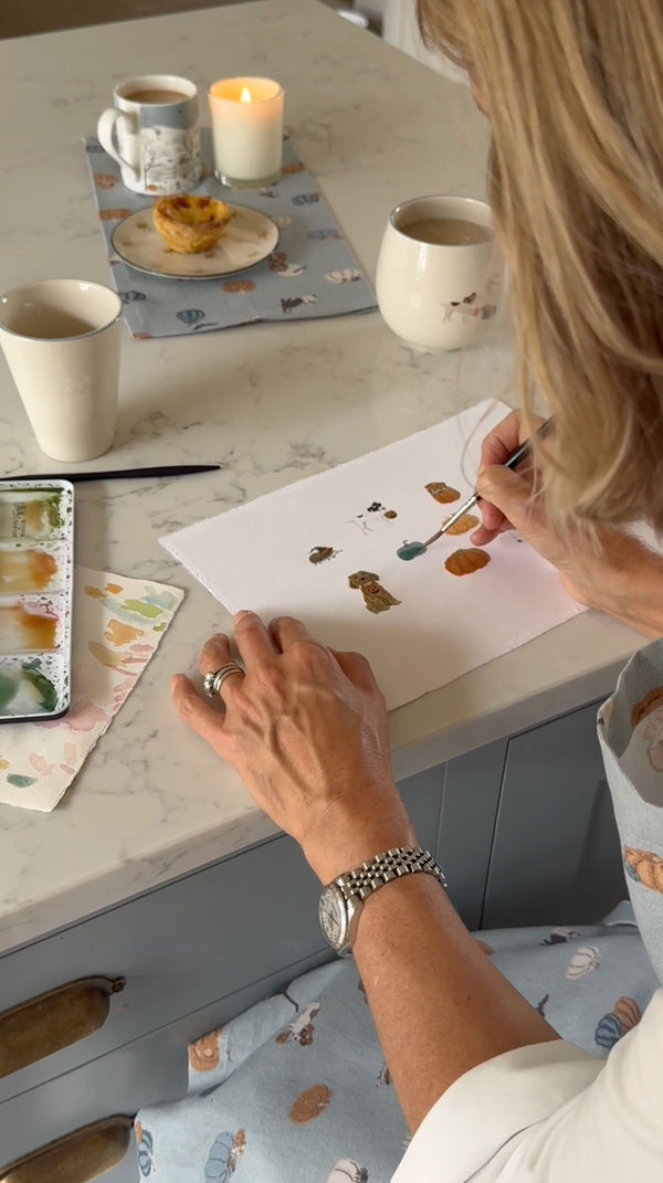 “I wanted to capture the playful side of Halloween with this new collection, stacked pumpkins, crunchy leaves, and a few of our favourite pets in costume. It was such a joy to bring it all to life with brush and paint, with the spirit of the Halloween woven into every detail.”