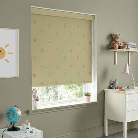 Perfect for children's rooms or nurseries, this adorable roller blind features Sophie's Bears & Balloons design, which is covered in safari animals with cute giraffes, lions, zebras and teddy bears on a soft mustard ground. Perfect for blocking the light when they go down for a daytime nap or evening snooze.