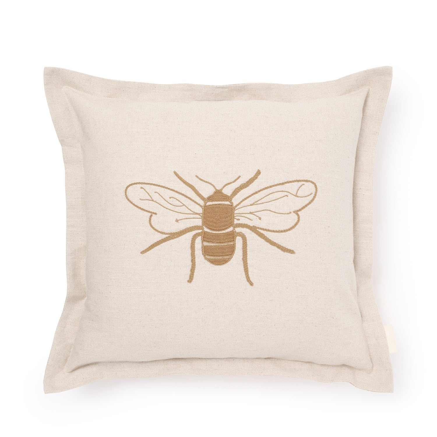 Bring a touch of nature into your home with this charming Bees Embroidered Cushion. This linen-blend cushion features a beautifully embroidered bee and is finished with a striped mustard-yellow reverse, adding contrast and extra versatility for styling. Whether placed on a sofa, bed or favourite armchair, it’s a lovely way to bring the outdoors in.