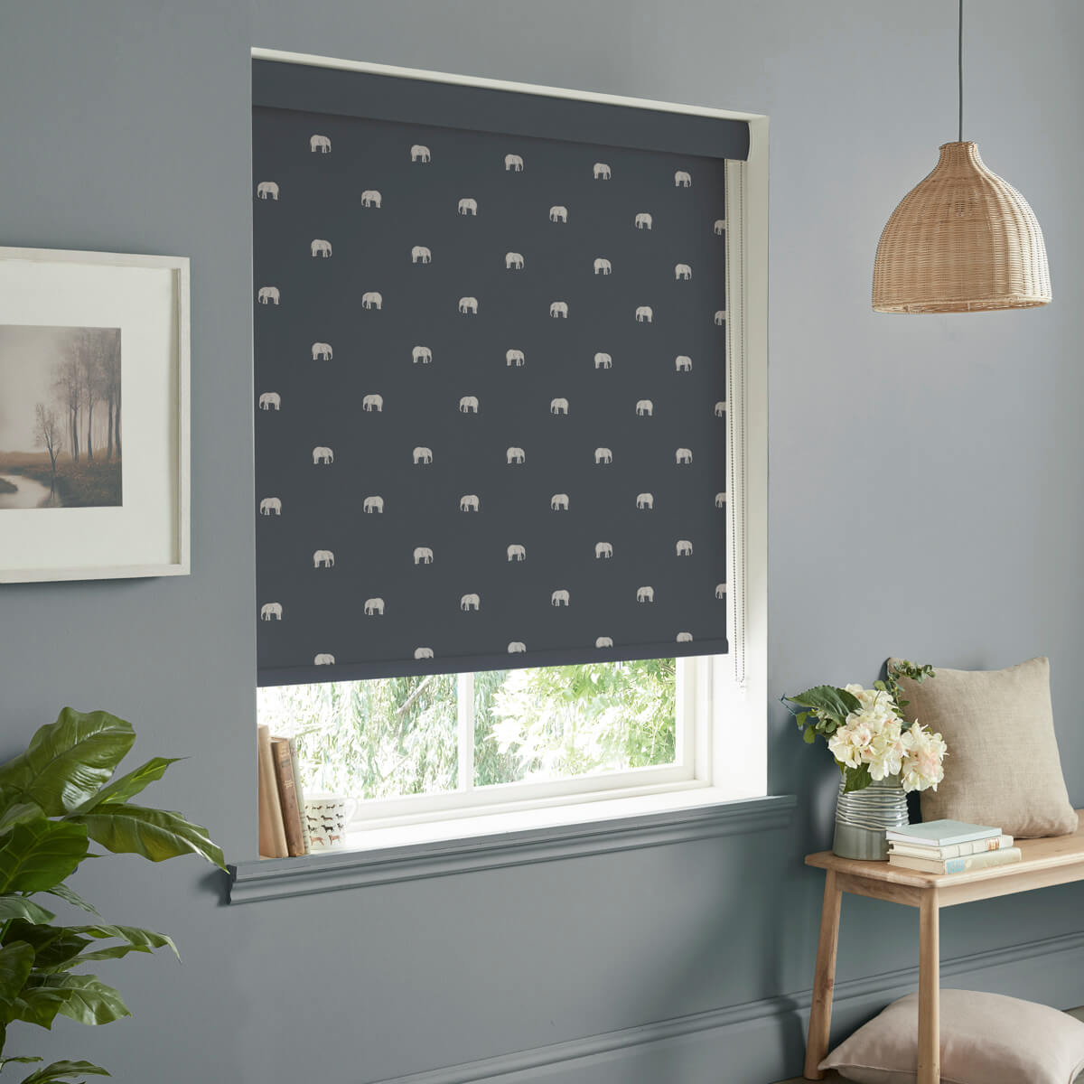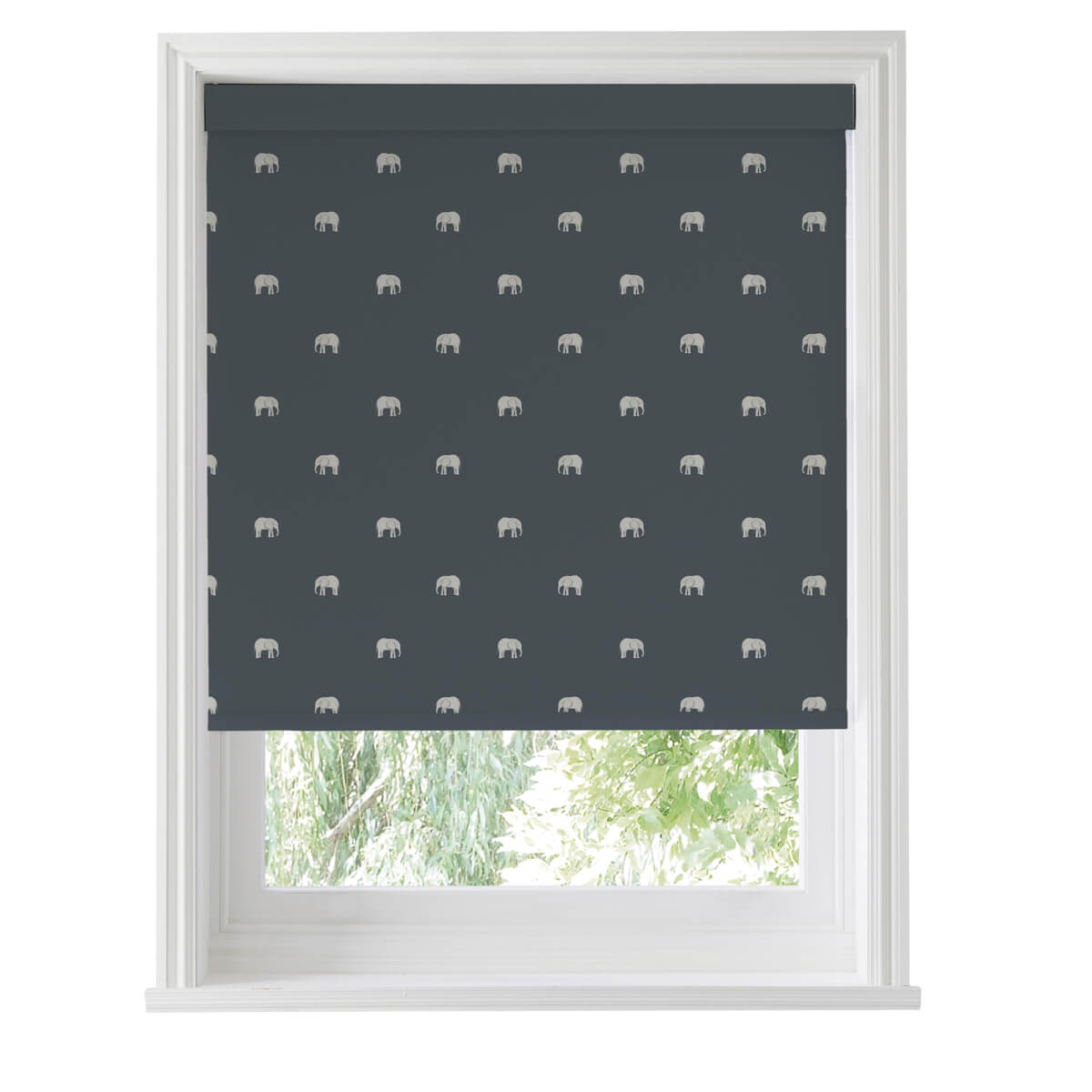 Add a stylish touch to your home with this beautiful roller blind featuring Sophie's magnificent elephant illustrations on a deep navy ground.