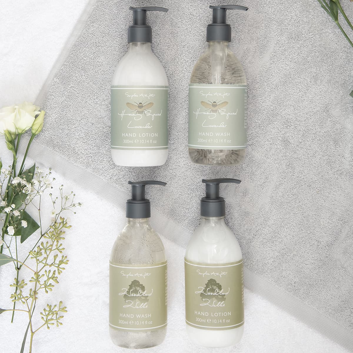 A reminder of country winter walks, crunchy autumnal leaves, sloe gin drinking, cosy times by the fire, frosty winter weather, festive family gatherings and the contrast between the icy cold outside and the warm inviting inside. Subtly scented, this 300ml moisturising hand lotion has been specially formulated in the UK and will help keep your hands nourished and moisturised. Makes an excellent gift idea and pairs perfectly with our Woodland Walk hand wash.